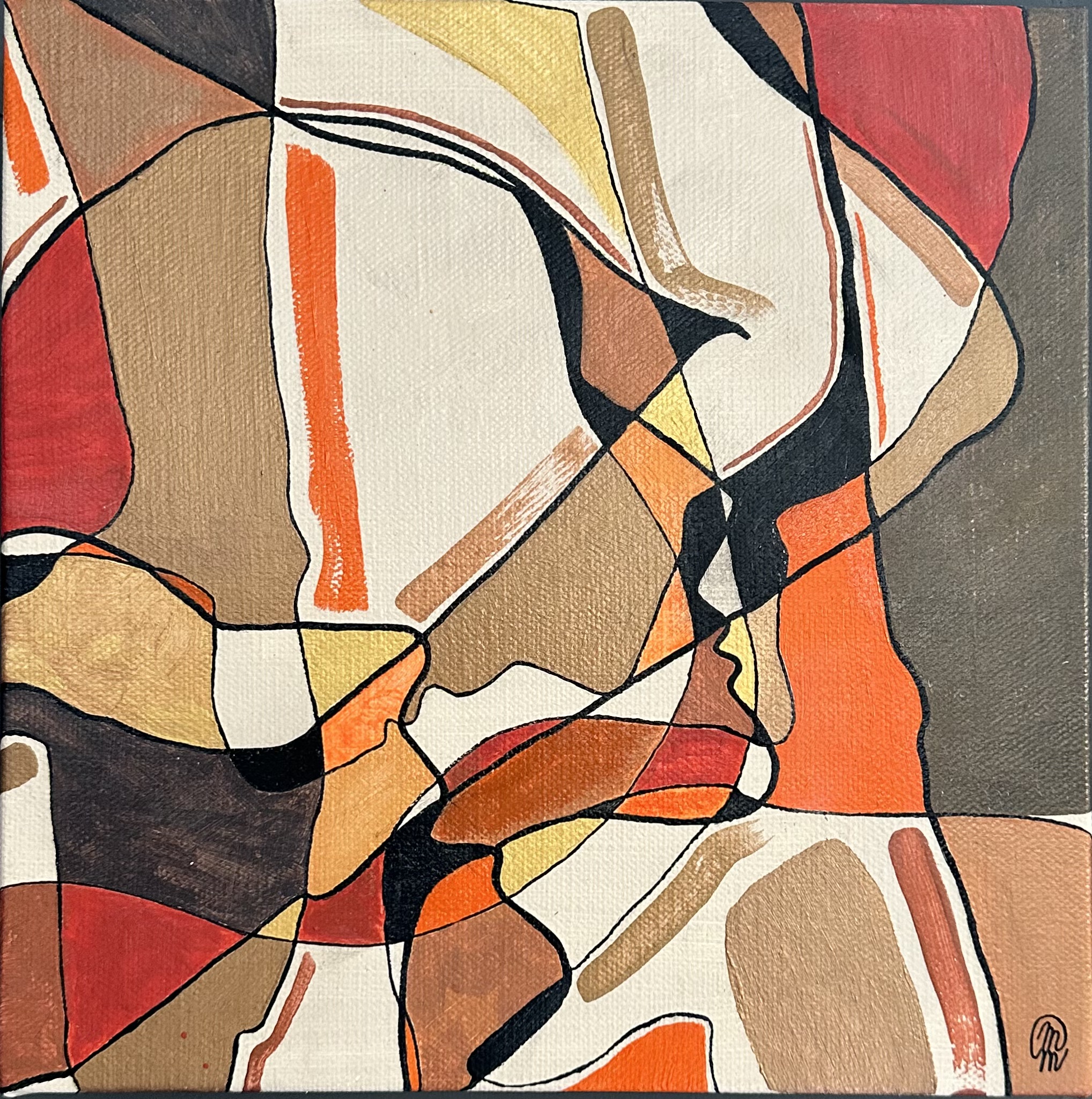 NOUVEAU PROFIL est un autoportrait en couleurs lumineuses, un carré de 30×30 cm qui explore un puzzle de visage, fragmenté et réarrangé. Les tons chauds dominent, créant une atmosphère rétro. L’ensemble dégage une sensibilité intemporelle, entre abstraction et figuration, où chaque détail participe à une reconstruction délicate de soi.